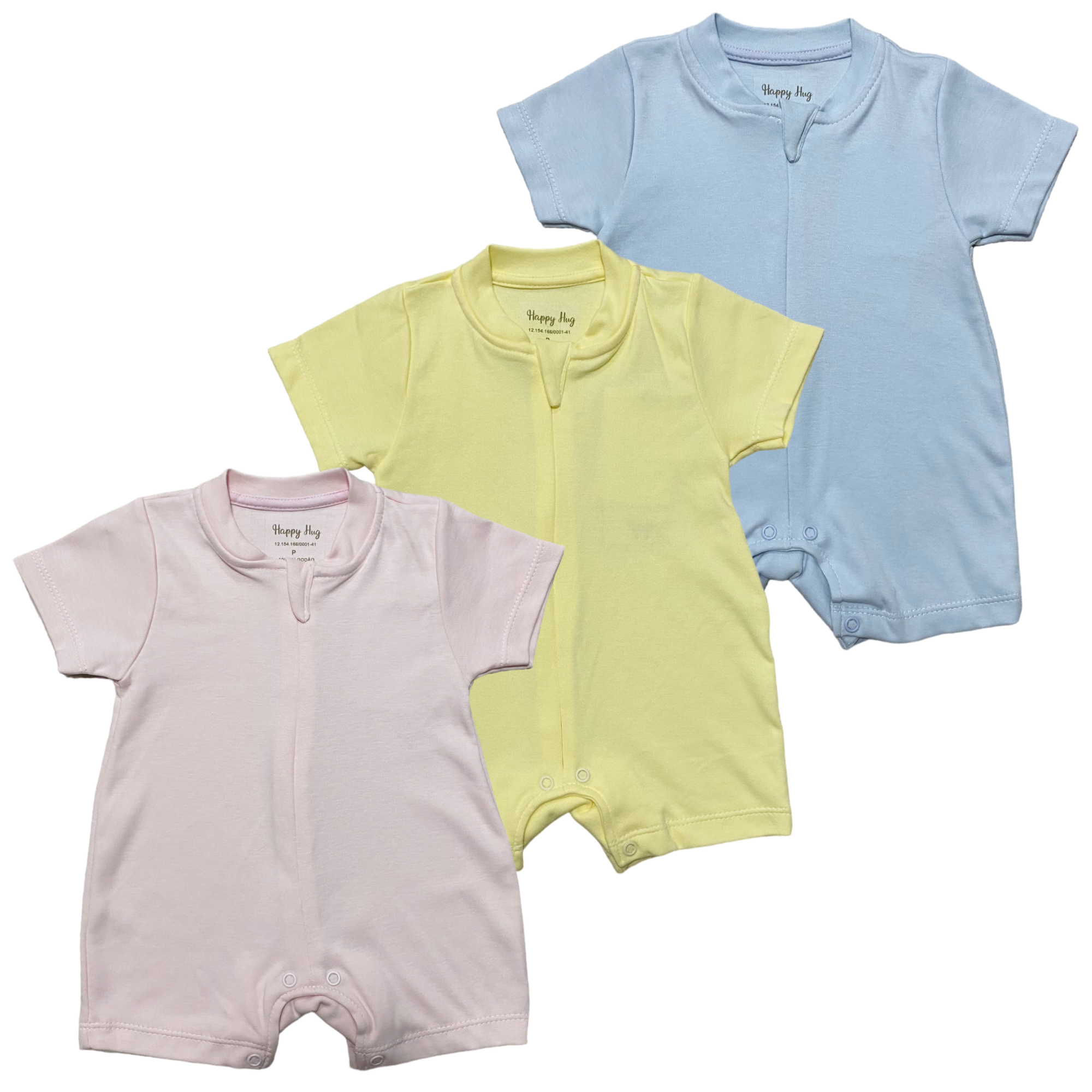 Macacão curto com fechamento em zíper invisível facilitando a mamãe na hora de vestir e trocar.