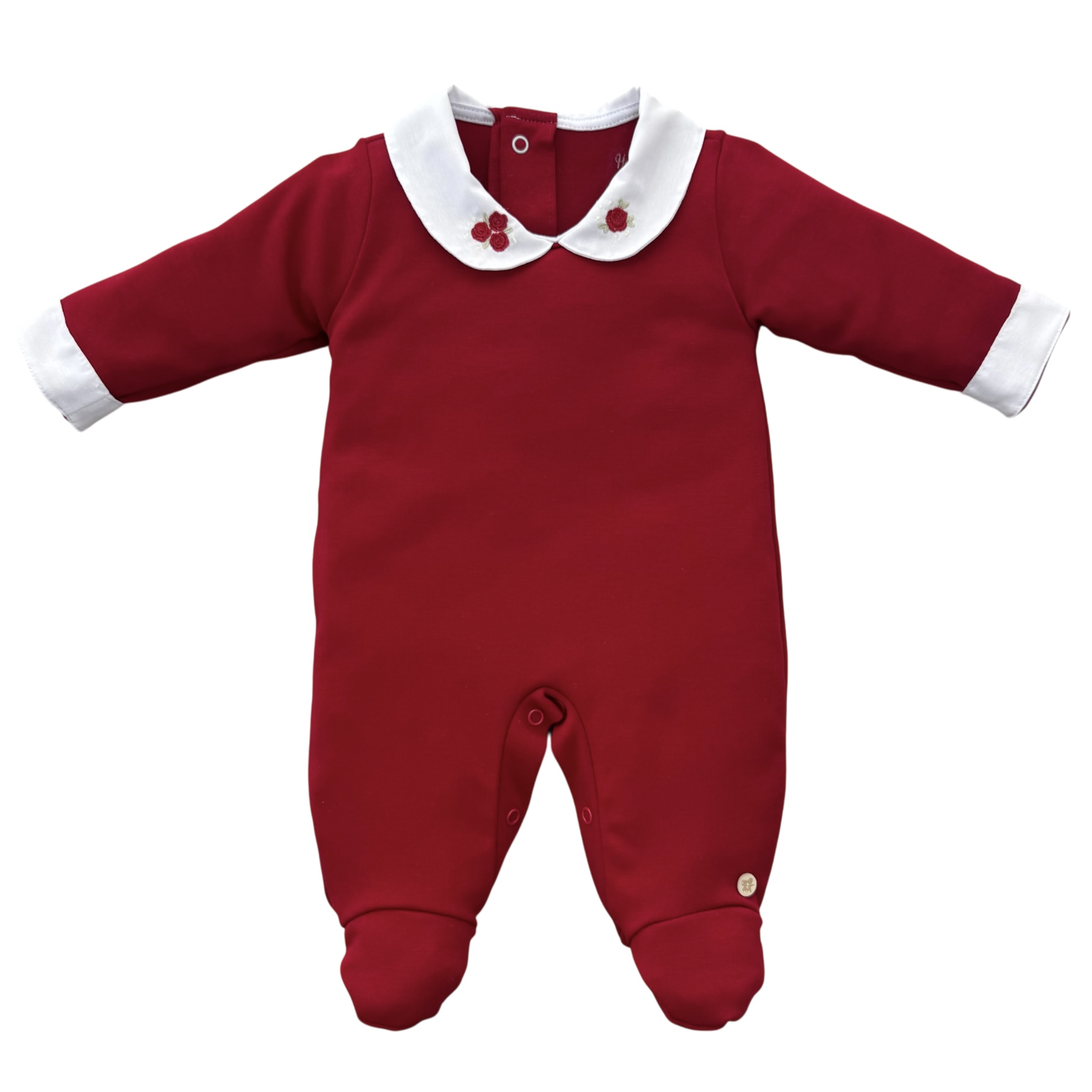 Macacão longo com bordado de flores na gola, com abertura nas costas e no entre pernas com botão de pressão!